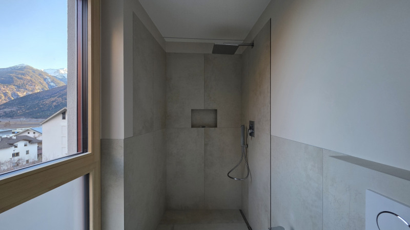 Die weitläufige Terrasse erweitert den Wohnraum und bietet Platz für Lounge-Möbel, Outdoor-Dining und private Sonnenmomente. Die Aussicht auf die Bergkulisse rundet das Gesamterlebnis ab und schafft einen Rückzugsort, der auch im Arbeitsalltag absolute Entspannung ermöglicht.